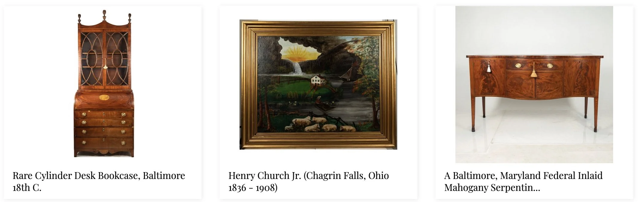 The Gray's December Fine Antiques, Art and Decorations Auction features a rare Federal Cylinder Desk and Bookcase from Bankson and Lawson, Baltimore, created between 1785 - 1792, along with many other intriguing antiques, several 16th C - 19th C paintings by Flemish, Dutch and German artists and numerous silver, gilt and bronze decorations. Wonderful rugs, Ogee and tall case clocks, architectural elements and a large taxidermy Marlin round out this compelling end of year auction.