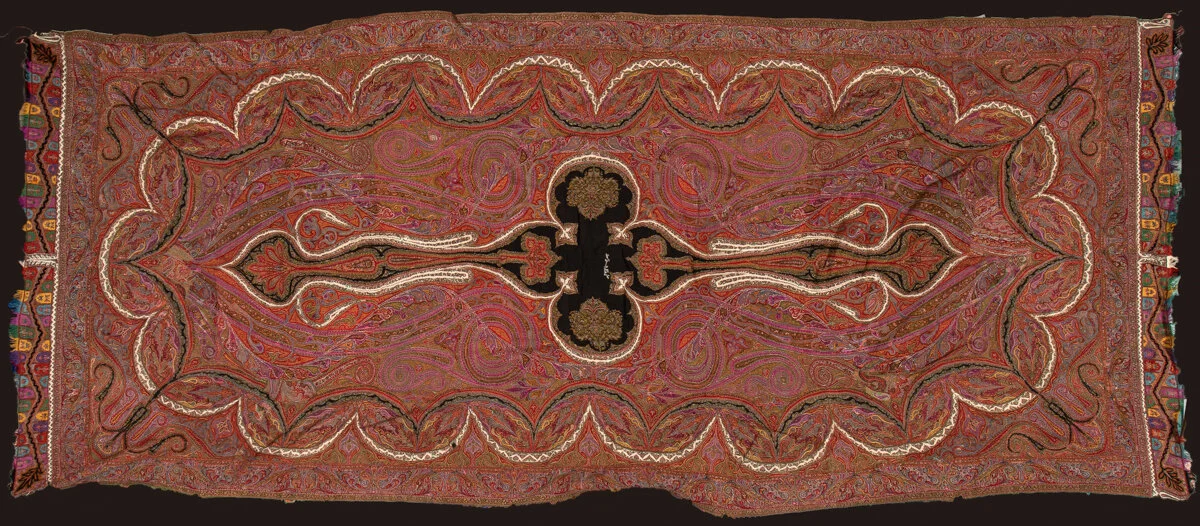 A Very Fine, Rare Long Kashmir Shawl, Dochalla, North India, ca. 19th Century, Pashmina wool, silk and cotton with dense foliate design throughout with merchant’s mark near center.
